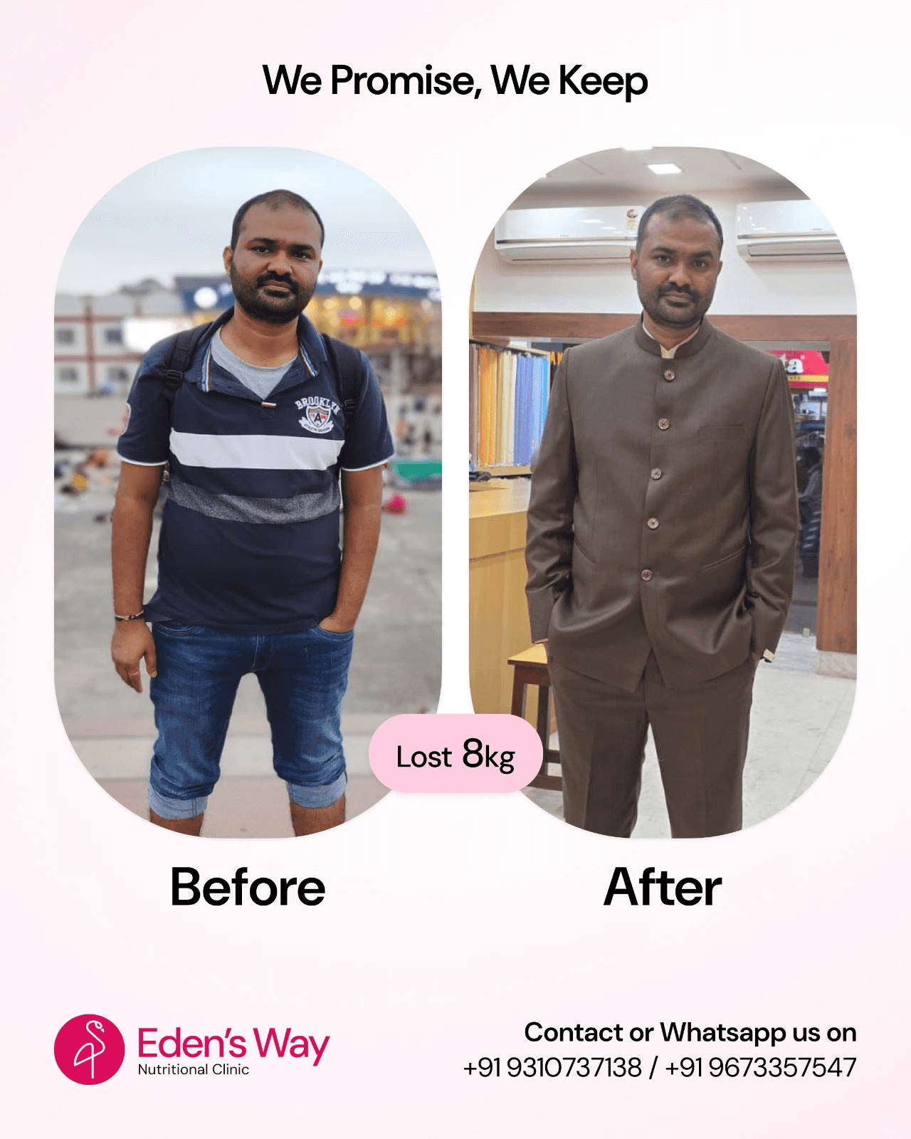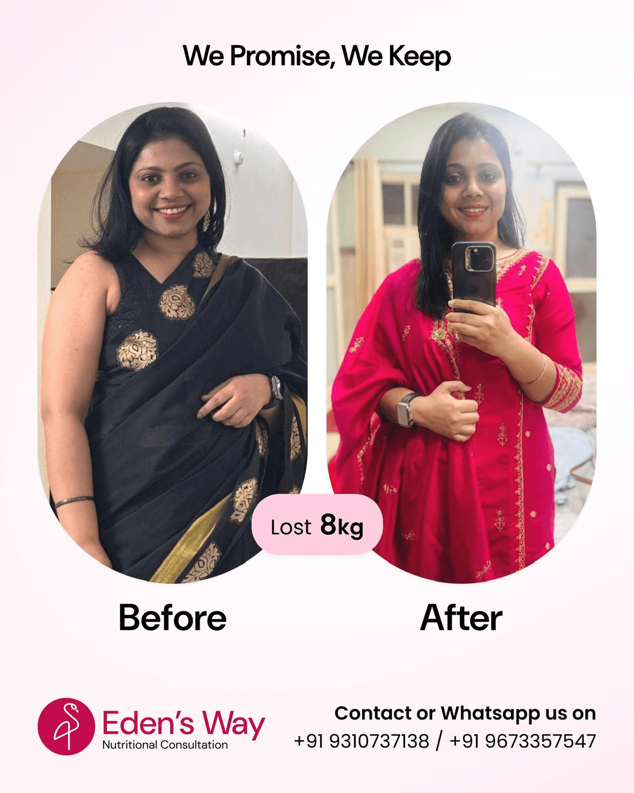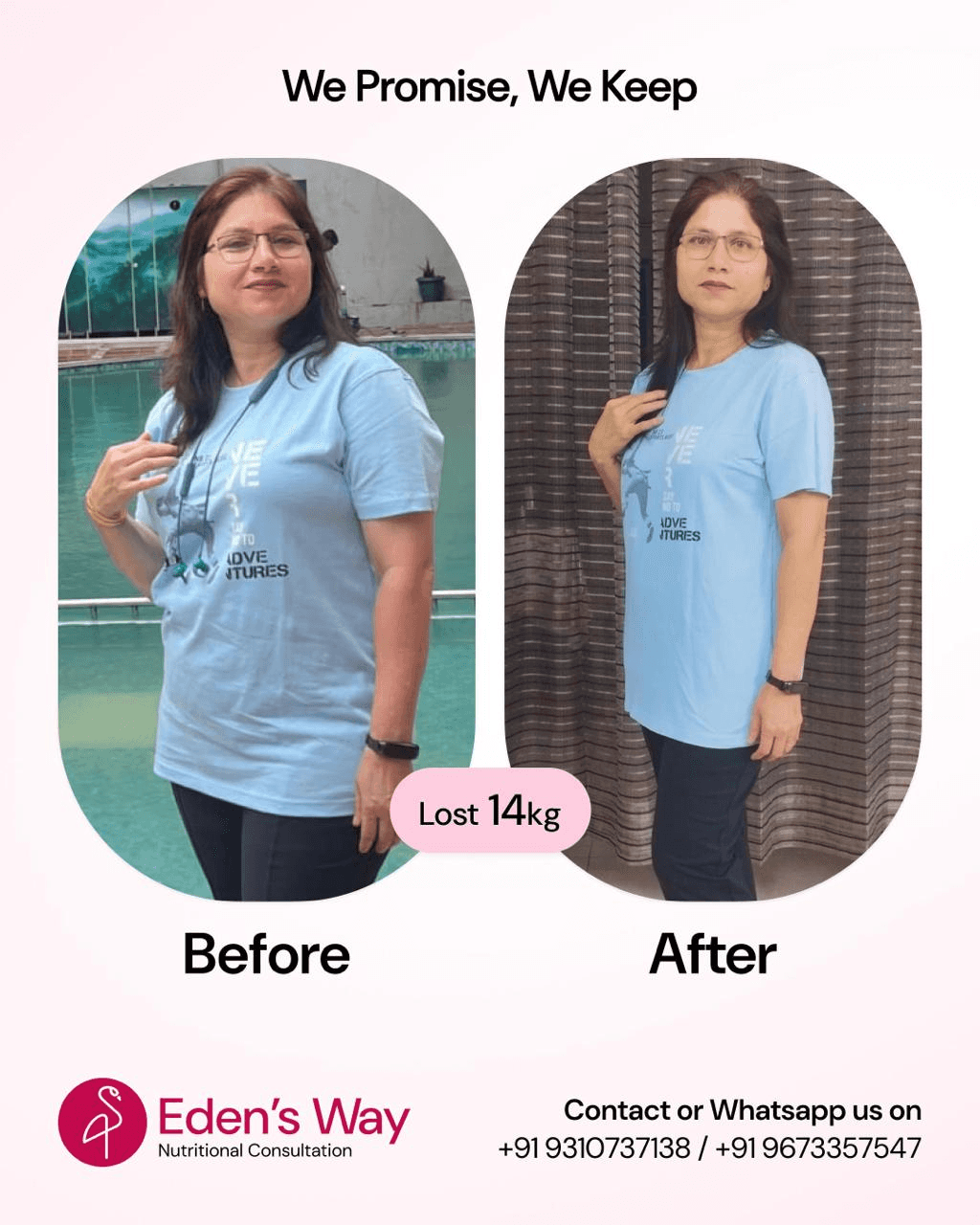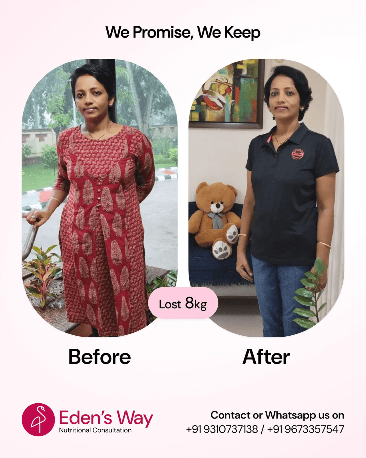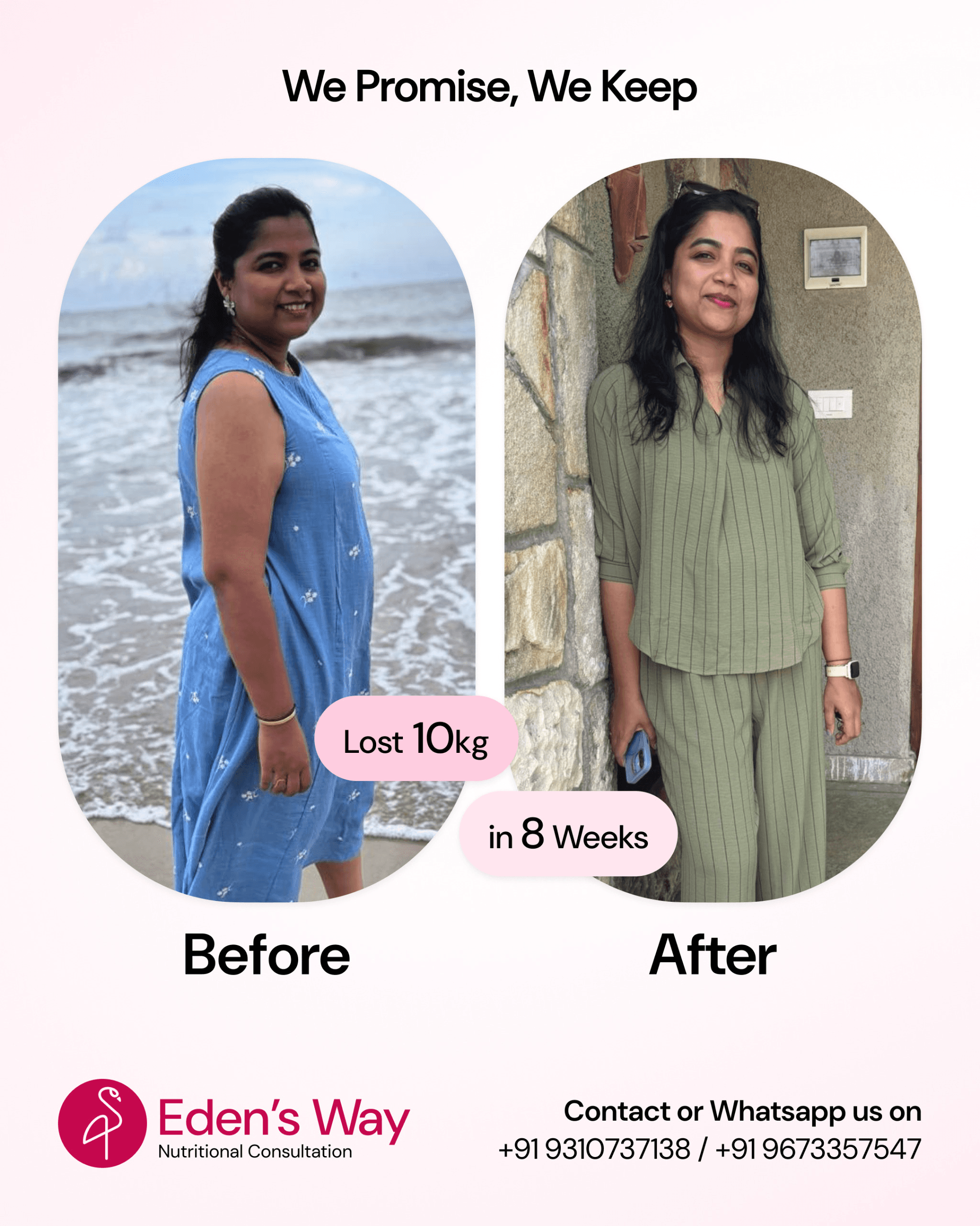 I had been struggling with my post-pregnancy weight for over a year. With the full support of Eden’s Way, I was able to get back to my weight within the scheduled time frame.
