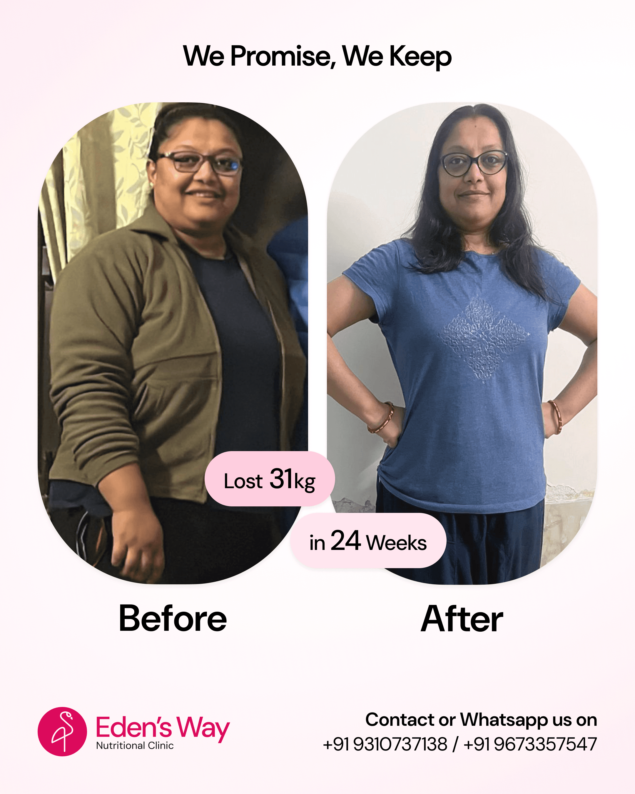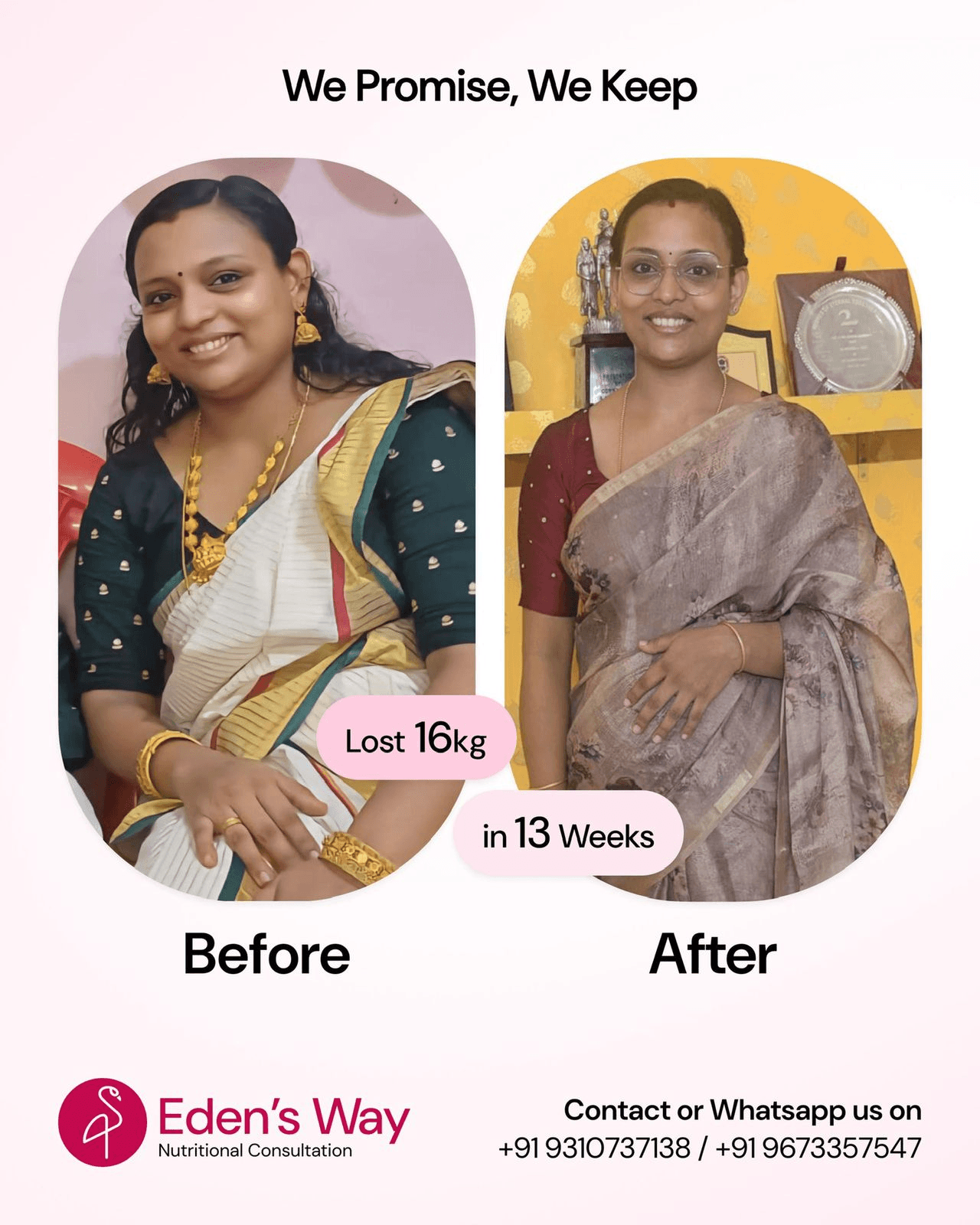 Thank you, Eden’s Way, from the bottom of my heart for helping me shed all my extra body weight in an unbelievably short time and in the most natural way possible.